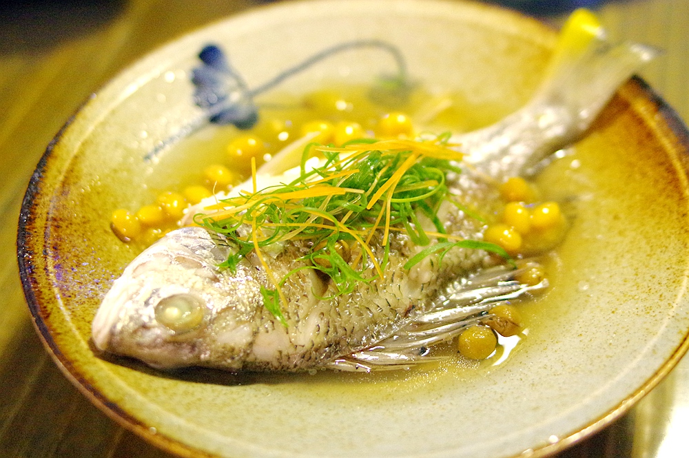 这里的做法类似潮州馆子的鱼饭,却有明显区别,半干不湿,和破布子一起凝结的鱼冻鲜而有特别的回味。