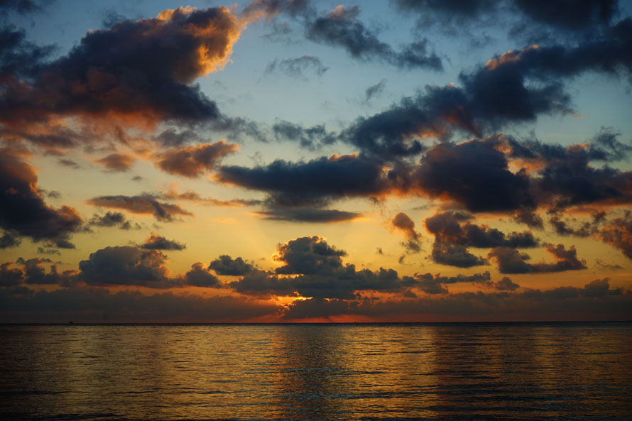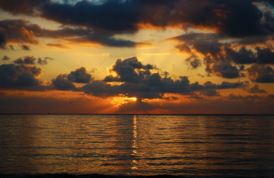 太阳从云层的缝隙里漏出一线光,铺进了海面