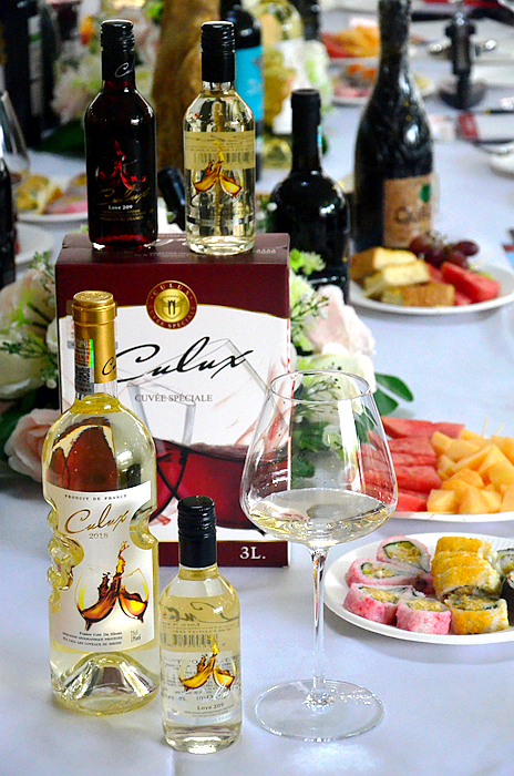 品尝的第二款酒,双杯佳乐事干白葡萄酒、双杯佳乐事干红葡萄酒。这款酒的瓶身很有特色,上面有手掌握住的指痕,手感特别棒,设计的创意让人耳目一新。