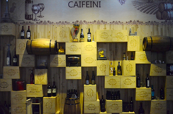一进门就让人惊艳,两边是高大的酒柜,摆出了杯子和酒庄名字的造型,让人赞叹不已。