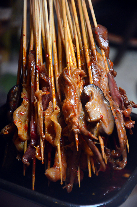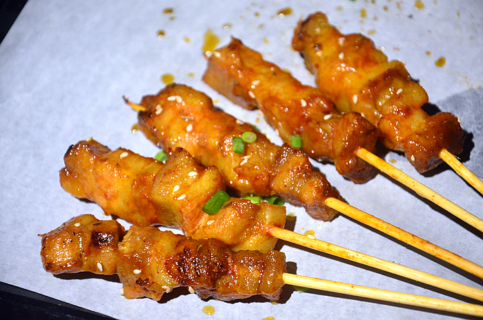 泼油猪小串,烤的香喷喷的肉串,淋上辣椒油,麻辣鲜香,十分够味。