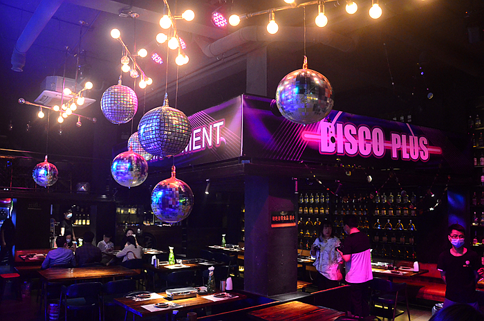 两个食指就像两个窜天猴,指向闪耀的灯球,哈哈,真有内味呢!