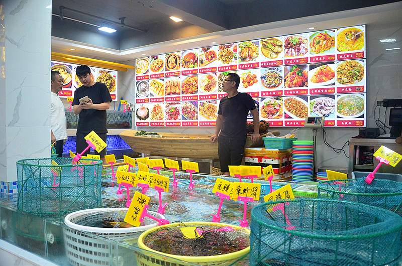 海鲜池养着生猛海鲜,按厦门海鲜餐厅的惯例,看着海鲜点菜,一目了然。