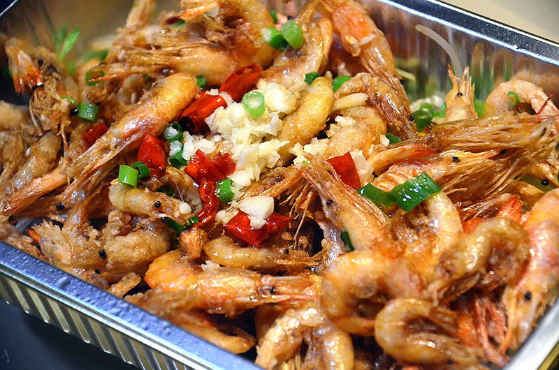 油淋小白虾,小白虾烹制的香香脆脆,不用剥壳直接吃,鲜香够味,吃上一只虾,喝口啤酒,无比惬意。