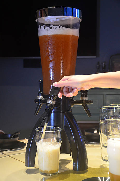 先点上一扎自家酿的黄啤,口感柔滑,麦香醇厚,喝上一杯,沁人心脾。