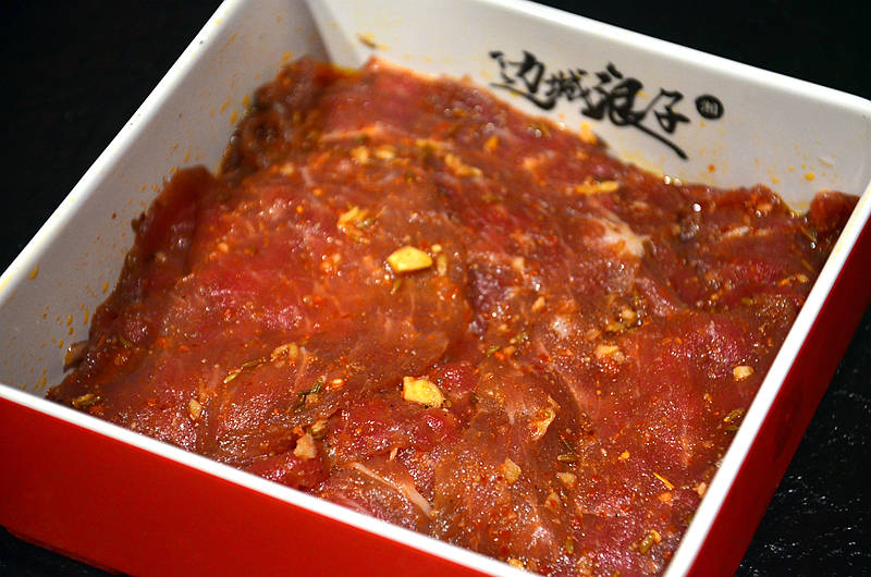 浪子牛肉,色泽红润,切成大块薄片,刀工精湛,腌制入味,烤熟后吃起来香嫩可口,不愧是招牌菜之一。
