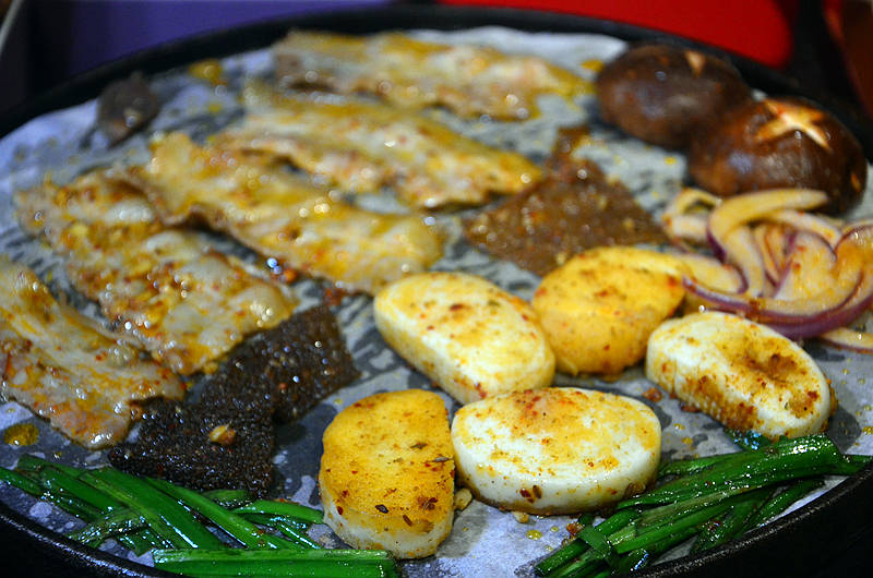 其他菜色也不遑多让,鸡软骨嫩脆弹牙,鸭腱爽脆美味,鸭血柔嫩鲜美,小馒头香香脆脆,一烤熟就瓜分一空。
