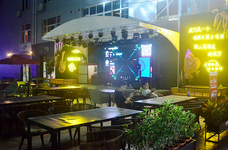 老猫洛克音乐酒馆位于厦门软件园二期夜光汇二楼,就在那个著名的麻花楼对面。