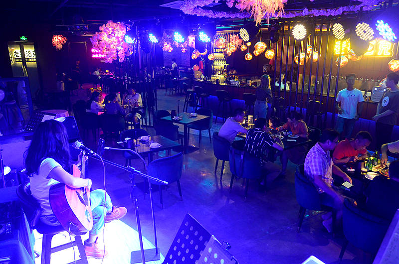 晚上九点,到了乐队的表演时间,越夜越美丽,夜晚才刚刚开始......