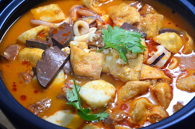 厦门沙茶烩,满满一锅食材,有鱿鱼、鸭血、豆腐、鱼丸、肥肠等,真材实料,诚意满满,沙茶汤汁熬制的很有水准,麻辣鲜香,滋味浓郁,大家赞不绝口。