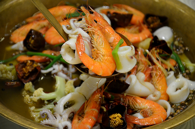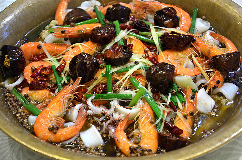 接下来就是期待已久的经典招牌菜小鱿鱼加虾啦,一端上桌就香气四溢,让人食指大动,红彤彤的虾,白嫩嫩的小鱿鱼,让人一看就食指大动,迫不及待送入口中,小鱿鱼嫩脆弹牙,麻辣鲜香,虾肉饱满紧实,香辣鲜美,就是这让人迷恋了好多年的滋味,色香味俱全,赞不绝口。