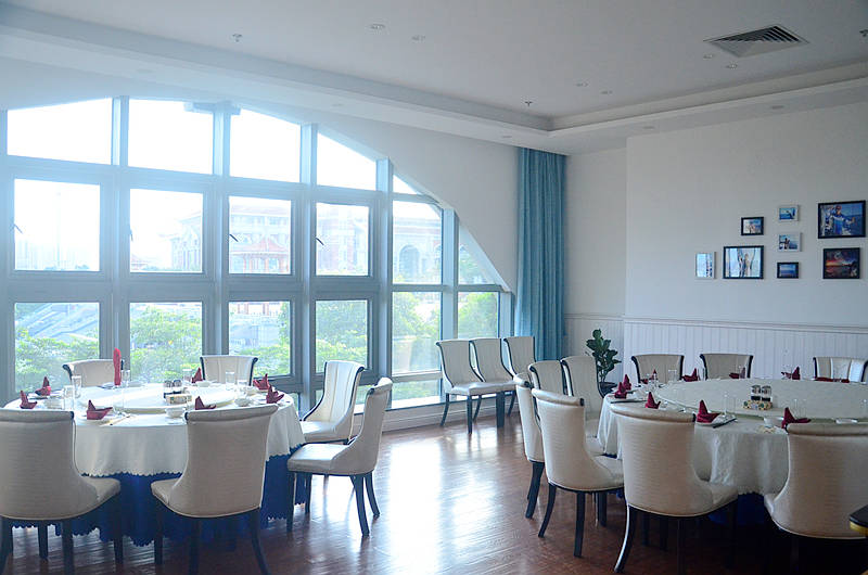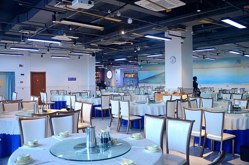 餐厅宽敞明亮,优雅清新,蓝色和白色为主色调,让人想到而来蓝天大海和白云,心情愉悦。