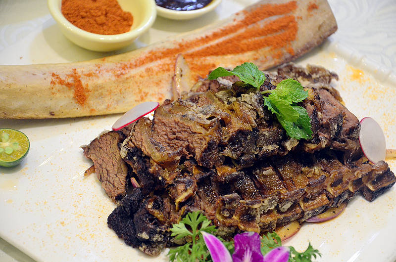 金牌牛肋骨,摆盘精美大气,牛肋骨部分的肉口感柔嫩,连筋带肉,卤制的肉香浓郁,口感味道俱佳。