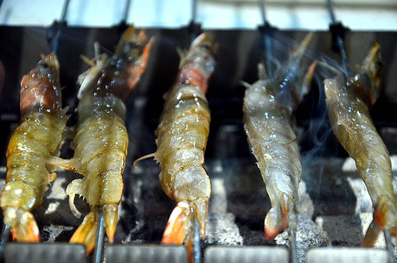 烤虾,个头硕大,色泽清亮,看着慢慢烤熟变红,迫不及待吃上一只,肉质饱满弹牙,鲜美可口,回味无穷。