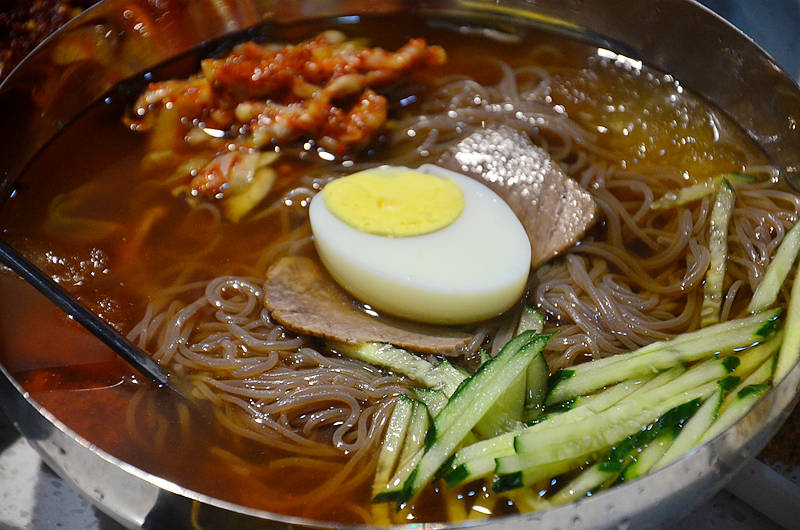 延边冷面大名鼎鼎,面条爽滑Q弹,加入了丰富的配料,有肉、蛋、黄瓜等,汤汁冰爽,炎炎夏日吃上一碗,沁人心脾。