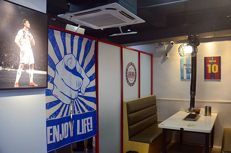 看来老板还是个球迷呀,墙上有好多足球元素。