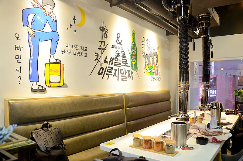 墙上画着活泼的壁画,不过文字是韩语看不懂,你看的懂吗?