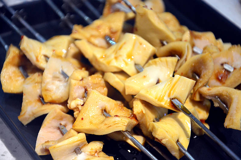 牛心管,已经煮熟了,烤1-2分钟就可以吃了,非常厚实,口感紧实Q弹,真是太赞了,蘸着甜辣酱吃,风味独到。
