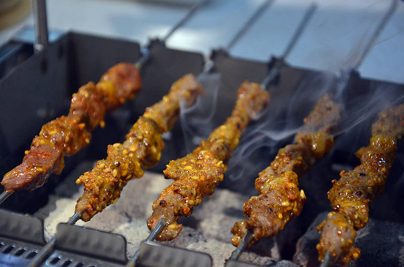 羊肉串也是必点的,柔嫩有嚼劲,有肉香而无膻味,肥瘦得宜,肥而不腻,爱不释手。