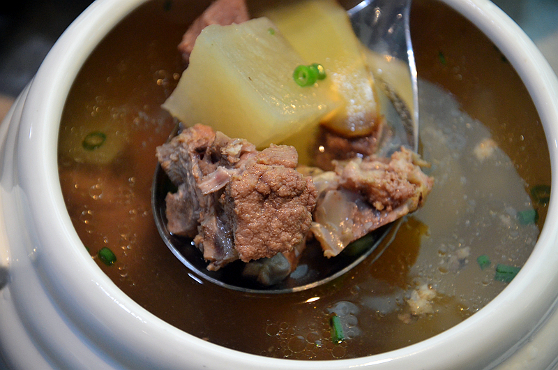 萝卜煨龙骨,有大块的萝卜,丰富的龙骨,汤汁香醇中带着萝卜特有的清香,浓而不腻,滋补养生。