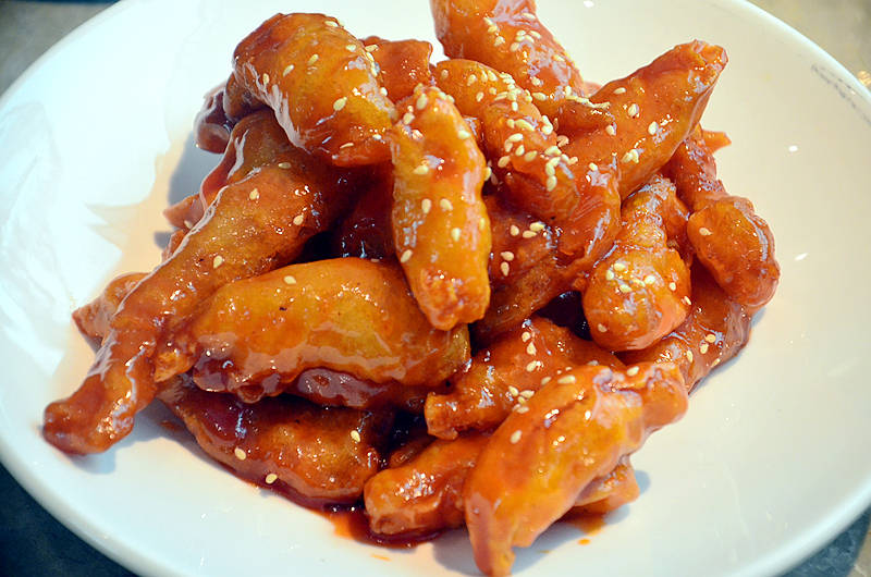 糖醋里脊,色泽焦黄清亮,闪着诱人的光泽,外酥里嫩,香甜美味,做的很有水准,令人惊艳。