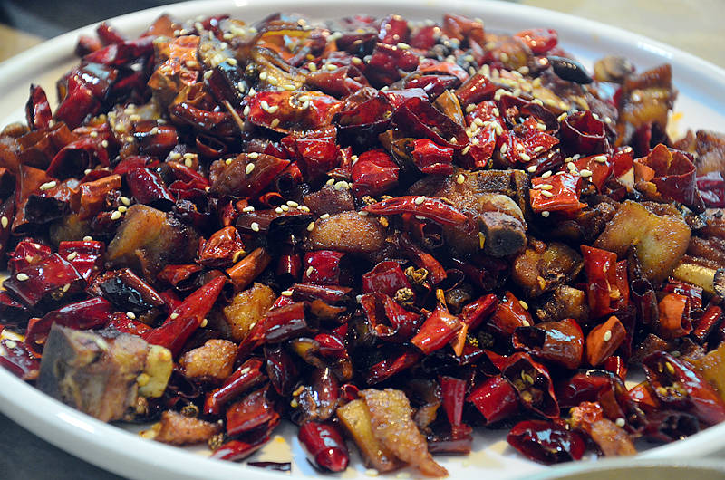 歌乐山辣子鸡,好大一盘,分量十足,鸡肉大块,火候恰到好处,不生不柴,麻辣香浓,好吃的停不下来。