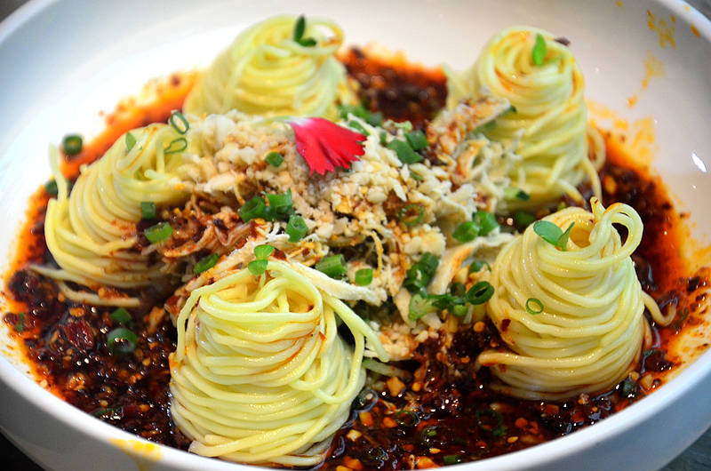 鸡丝凉面,面条顺滑Q弹,鸡丝细嫩可口,酱汁香辣够味,拌匀后吃,有滋有味,胃口大开。