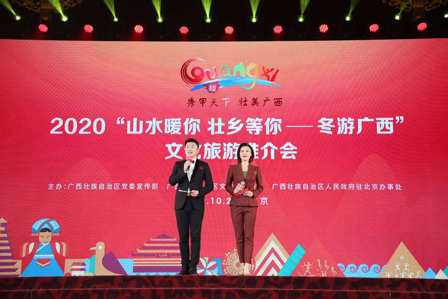 10月22日,由广西壮族自治区党委宣传部、自治区文化和旅游厅、自治区人民政府驻北京办事处共同主办的2020年“山水暖你 壮乡等你——冬游广西”文化旅游推介会在北京举办。