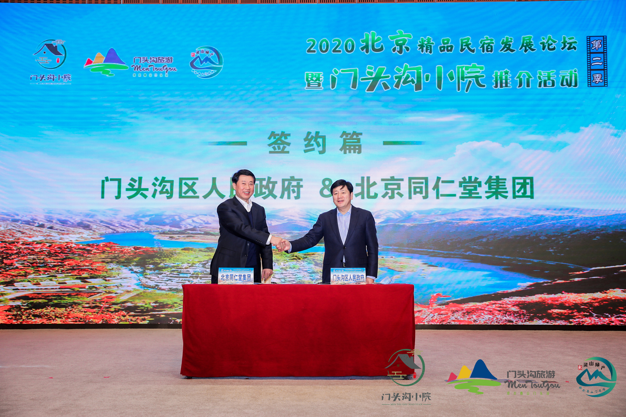 在活动中,门头沟区人民政府与同仁堂集团和北京演艺集团签订了旅游战略合作协议,5个村的集体经济组织与民宿投资企业就合作项目签订了协议;京能集团介绍了门头沟区“一线四矿”项目规划,解读了“芳草於白”主题田园综合体民宿项目设计;播放了“门头沟小院”精品民宿政策解读视频。同时,活动现场为“门头沟小院”评星创优擂台赛获奖单位颁发了奖牌,为“门头沟小院”设计大赛举行了获奖作品颁奖仪式;在活动展览区还展出了北京电影学院师生创作的,“行走门头沟小院•时光留在视野里”主题展览。