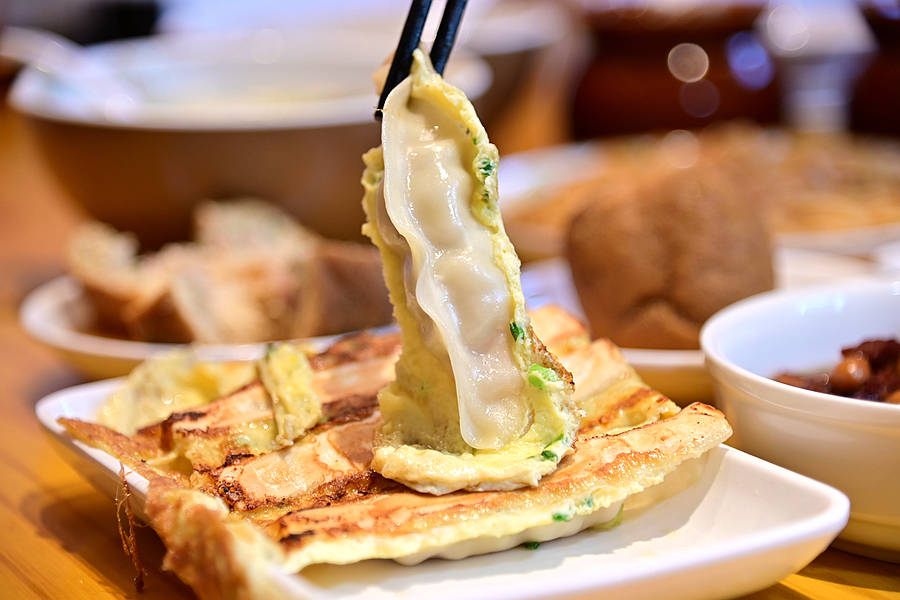 招牌黄金蛋煎饺,用蛋液包裹大颗的饺子煎熟,蛋香浓郁,滋味不俗。