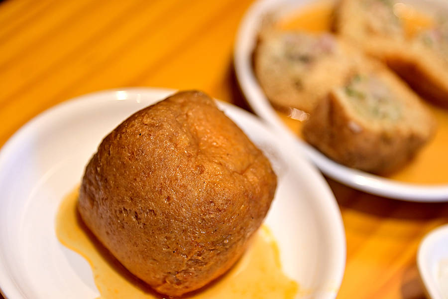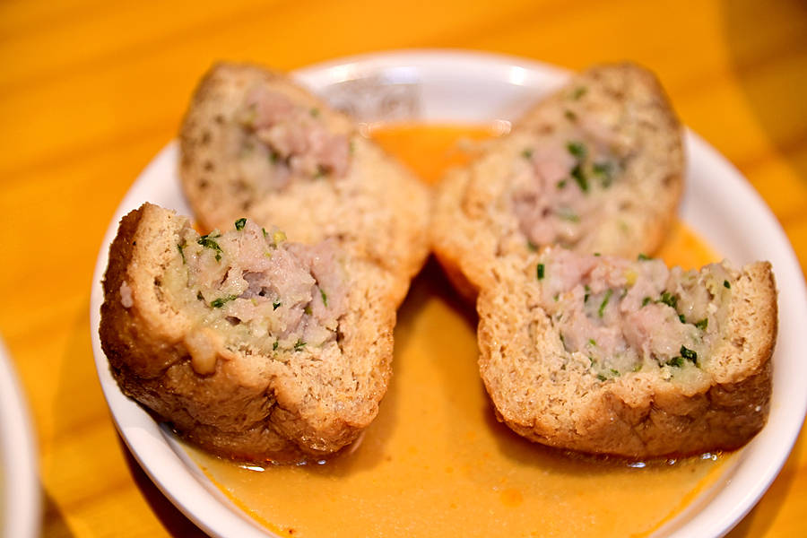 招牌金包银,这是经典小吃,金灿灿的大大一颗,外层是豆腐,里面是饱满的肉馅,豆香肉香完美融合,令人惊艳。