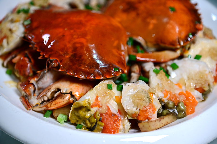 膏蟹蒸白芋,选用优质鲜活膏蟹,蟹肉洁白,蟹膏橙黄,一看就十分诱人,肉肥膏满,肉鲜膏香,白芋的清香更是锦上添花,让人吮指回味。
