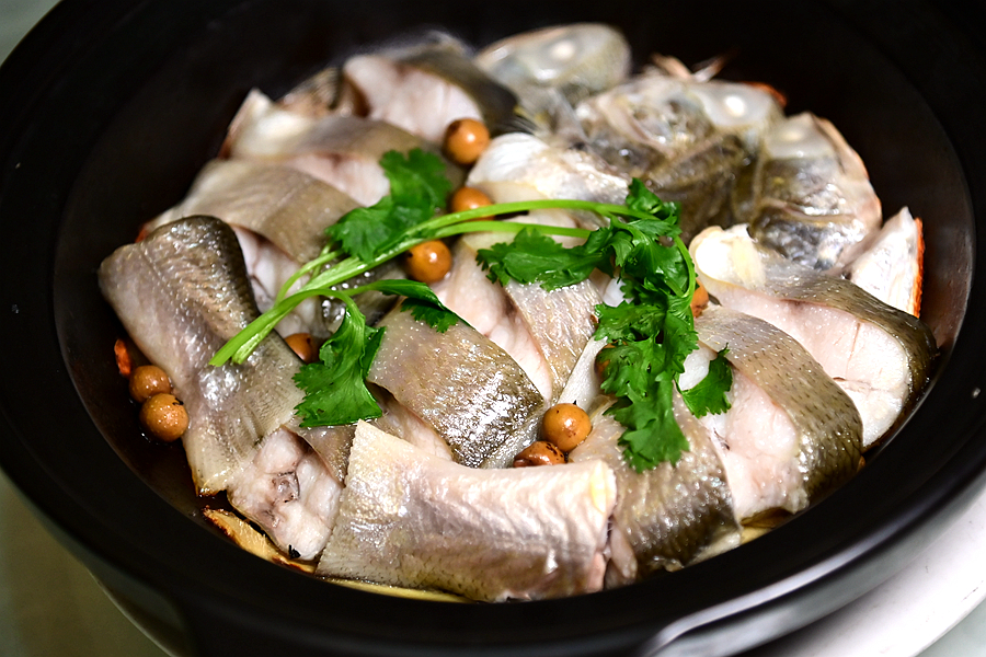 砂锅炝伍鱼,这是一种闽南人很喜爱的鱼,肉质细嫩鲜美,加入姜片、破布子等配料,用炝的方式烹制,鲜香无比,一会就瓜分一空。