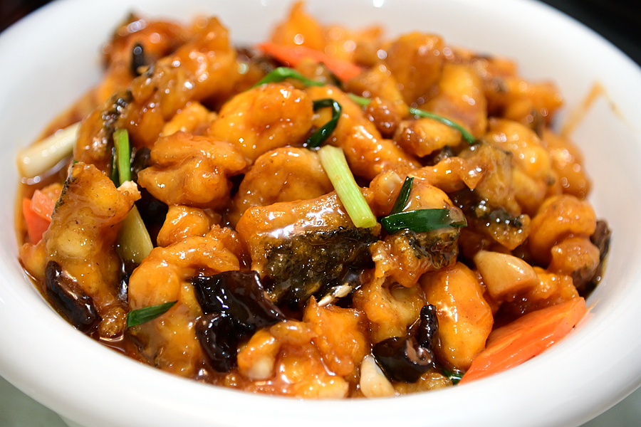 红焖深海鱼煲,色泽清亮诱人,鱼肉大块厚实,口感细嫩可人,焖的有滋有味,回味无穷。