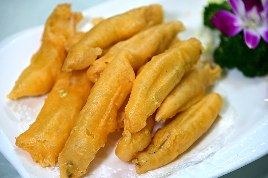 香酥丝丁鱼,金灿灿的十分漂亮,外壳香酥脆爽,里面丝丁鱼鲜美娇嫩,这是大排档里常见的菜,好食来做的很有水准。