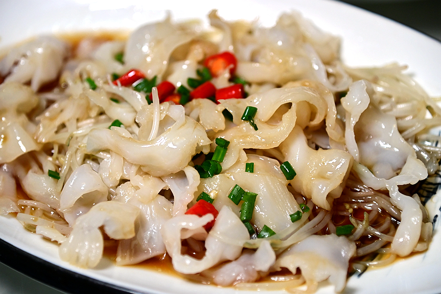 芥味螺片,洁白如玉,晶莹剔透,秘制酱料拌的滋味不俗,那一抹芥味更是画龙点睛。
