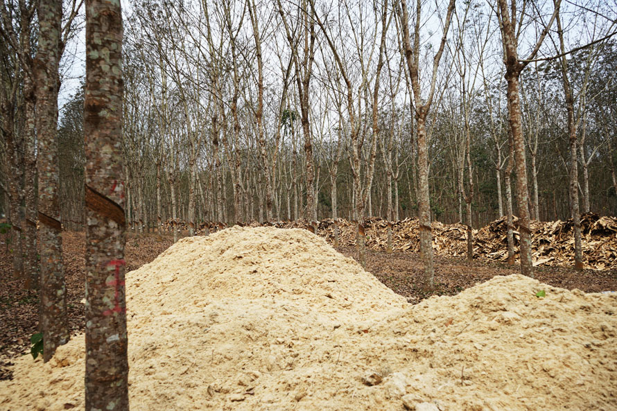 ▲图为种植食用菌需要的甘蔗渣、树皮等原料。