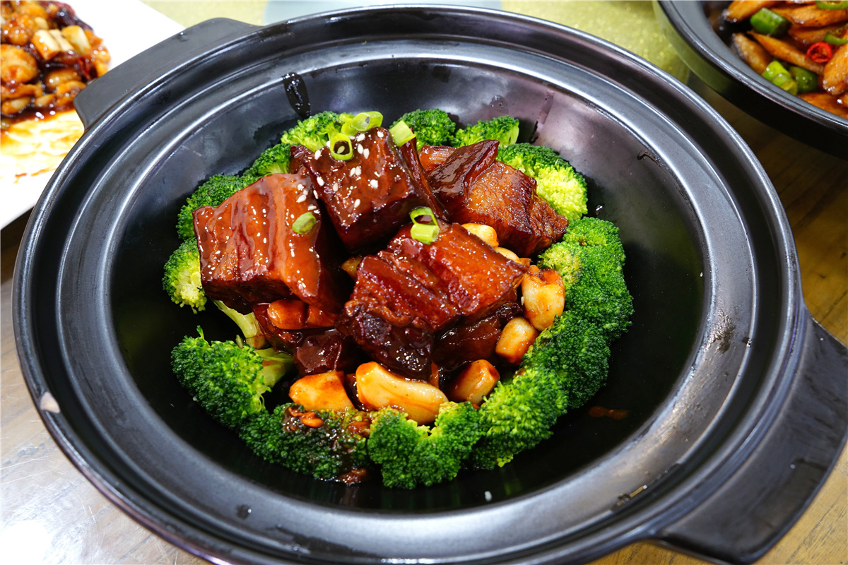 由15种材料精心制作的重庆毛血旺是最受年轻人欢迎的招牌菜,它是渝菜江湖菜的鼻祖之一,浓郁的麻辣鲜香让食者欲罢不能……宫保鸡丁是附近居民点得最多的菜肴。宫保鸡丁酸甜微辣,鸡肉滑嫩,花生米爽脆,非常下饭。