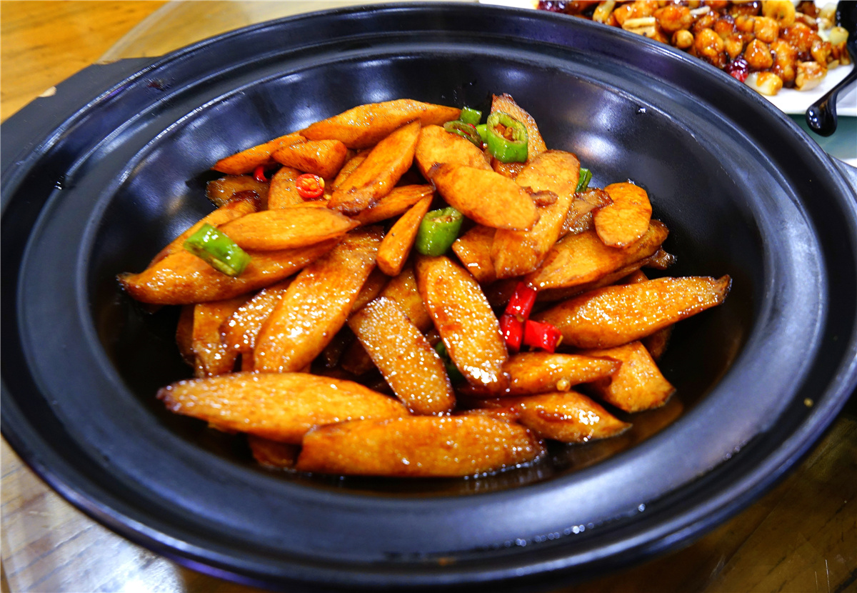 最诱惑人的当属红烧肉,大块的猪肉色泽红润, 口味浓郁, 酱香四溢,肥而不腻, 看着就让人垂涎欲滴。酱汁淮山药是一道湘菜,烹制的独特以及自身的营养深受老年人的喜欢。菜的品相好,具有浓郁的川湘地方特色的菜肴以及贴近顾客的服务,让不大的店堂生意兴旺,也许有一天你也会走进小店,品尝这里的美食。