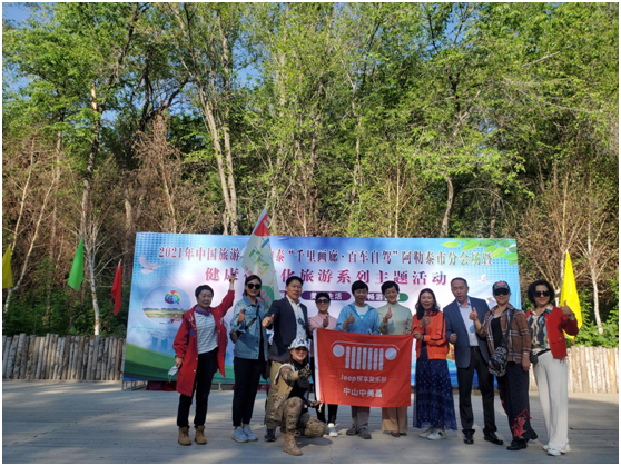 翌日清晨,自驾团队来到阿勒泰市4A级景区桦林公园,歌伴舞《请到阿勒泰来做客》将车友们引到5•19中国旅游日“千里画廊•百车自驾”主题活动阿勒泰分会场暨健康行文化旅游系列主题活动开幕式现场。
