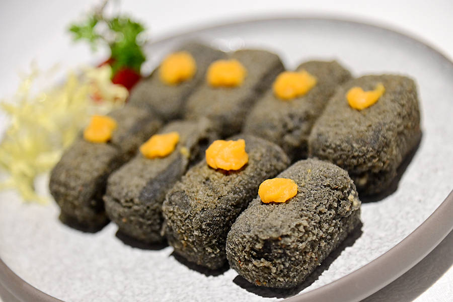 黑金豆腐,看起来黑乎乎其貌不扬,吃起来却是令人惊艳,内馅大有乾坤,细嫩幼滑,豆香浓郁,口感味道俱佳。