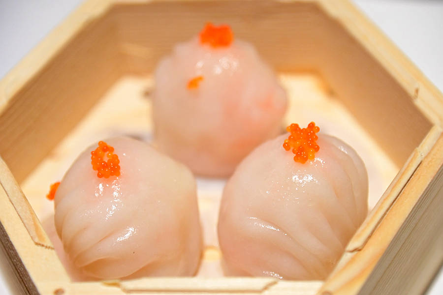 富悦轩虾饺,体型大颗圆润饱满,薄薄的饺皮晶莹剔透,上面还点缀着橘红的蟹籽,咬开一看,里面足足有三颗大个Q弹的虾仁,这虾饺也太绝了吧,简直震惊了!