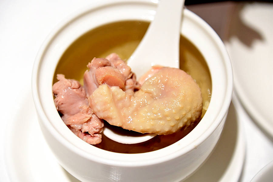 羊肚菌汤,有丰富的鸡肉和菌菇,真材实料,汤汁浓郁醇厚,热乎乎喝上一碗,暖心暖胃。