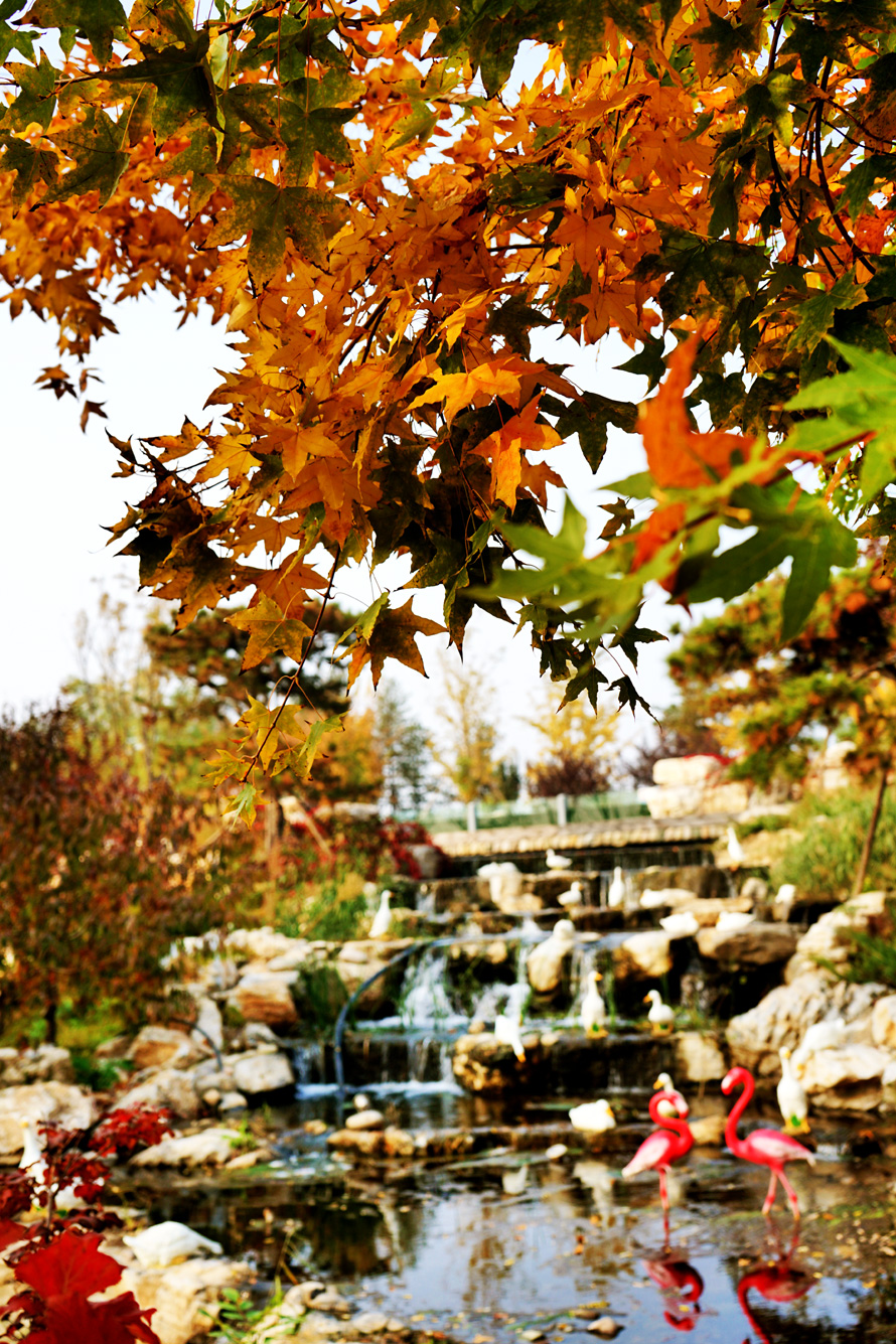 进入园区,穿过一片幽深曲折的竹林与狼尾草地,豁然开朗的空地中央是一片叠水瀑布,源源不断的清水在阳光下熠熠发光。