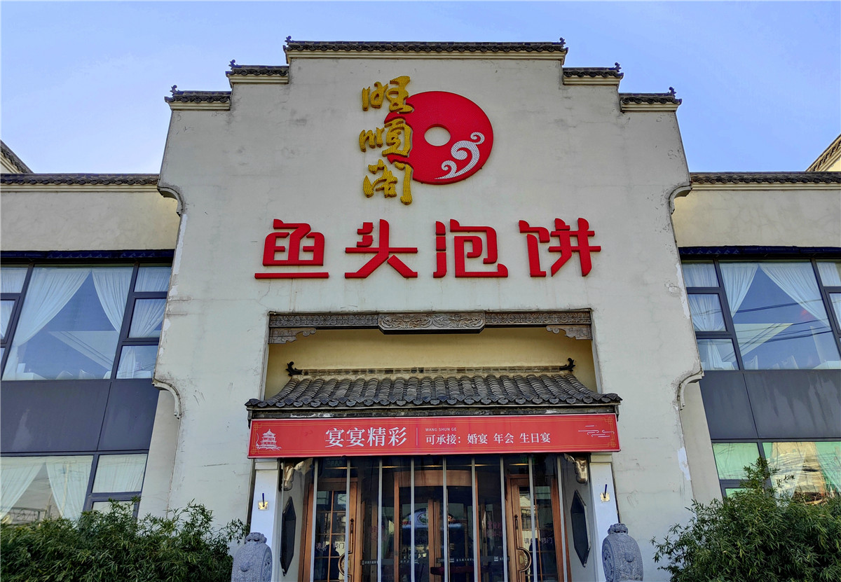 走进旺顺阁(小红门店),服务员忙着迎接前来就餐的客人,餐厅大堂和包间坐满了慕名而来的食客。店堂的宽敞明亮,餐桌上热气腾腾的大锅鱼头泡饼,围桌而坐兴致盎然品味美食的人们让旺顺阁呈现出红红火火的气象。服务员边将烙饼倒入鱼头锅里,边向人们介绍这道菜的特点以及品尝的顺序。