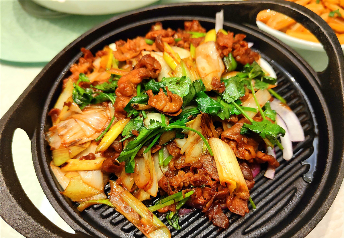 章丘大葱爆羊肉是饭桌上最受欢迎的一道菜,特别是章丘大葱的脆甜留给人们深刻的印象。