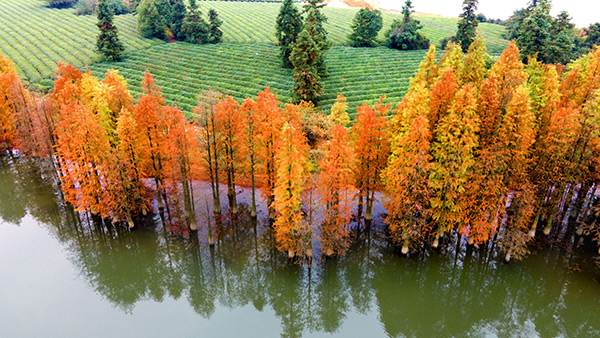 自然风景秀丽,拥有3000多亩形态优美的静水湖面,4000多亩清新优质的茶园,被评为“全国三十座最美茶园之一”和浙江省纯净自然的湿地……