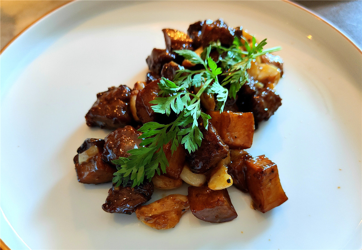 和松子桂鱼有着相同滋味的糖醋里脊酸酸甜甜,是孩子们喜欢的一道菜。外婆红烧肉、吴山烤翅也是食肉者喜欢点的荤菜。红烧肉肥而不腻,有着浓郁的香味。吴山烤翅别看放在盘里模样一般,吃到嘴里味道格外鲜美,尤其是小朋友们最是喜爱。