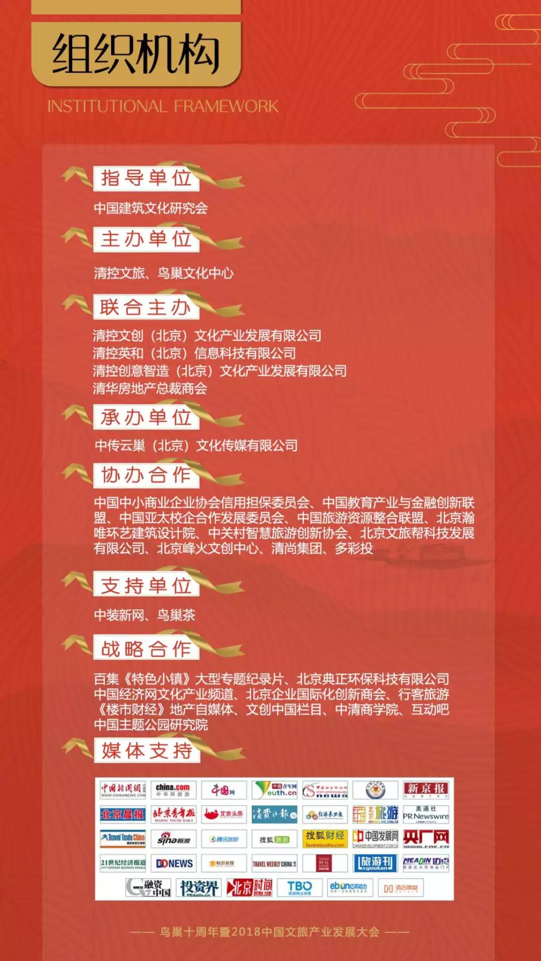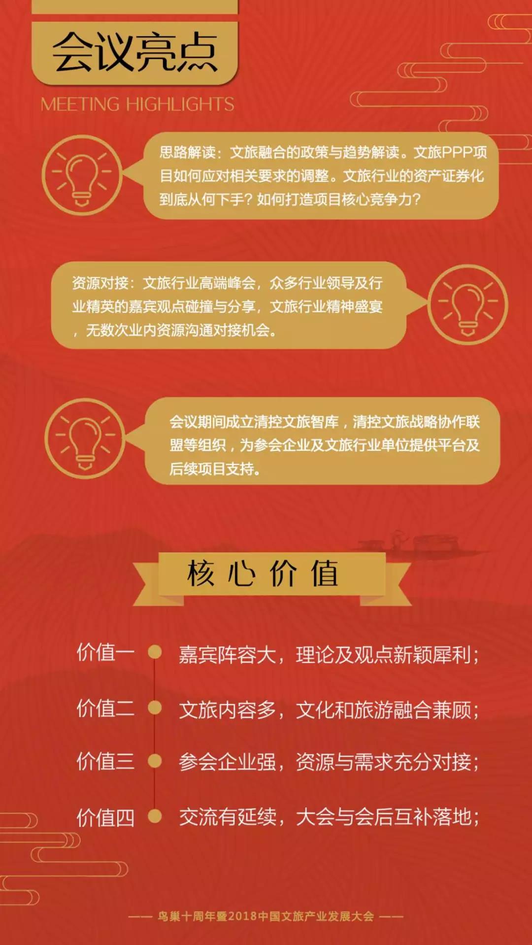 2018中国文旅产业发展大会是清控文旅与鸟巢文化中心首次强强联合,双方旨在搭建文旅全产业链平台,探索和发现文旅新生态融合发展的方向和机会,并为政府、企业、智库与资本方搭建沟通桥梁。