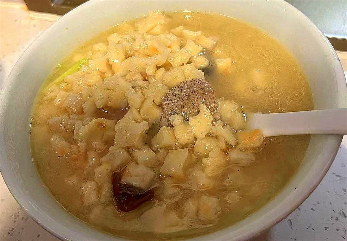 当年在西安曾去过当地最正宗的羊肉泡馍馆,品尝自己动手掰碎的馍在汤汁中的特有滋味。位于房山大学城北熙悦天街的汉唐小馆羊肉泡馍让我重温了当年的场景。天气寒冷的时候,点上一碗热气腾腾的牛肉扯面,大块的牛肉,醇香解馋,鲜美的汤汁吃下去,浑身暖洋洋的,那叫一个舒坦。